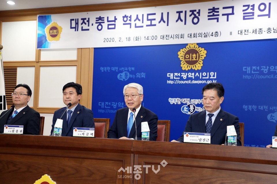 세종시의회 서금택 의장은 인사말에서 “세종특별자치시가 당초 행정수도로 계획된 이유는 지리적으로 우리나라 중심부에 위치한 충청권역을 기점으로 국가균형발전이라는 중차대한 목표를 효과적으로 달성하기 위한 것”이라며 “균특법 개정안이 국회에서 통과돼 대전과 충남이 혁신도시로 지정되어야만 세종시의 조성 목적과도 부합한 내실 있는 균형발전이 이뤄질 것”이라고 밝혔다.