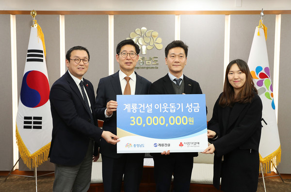 계룡건설이 도내 어려운 이웃을 위한 성금 3000만 원을 쾌척했다.