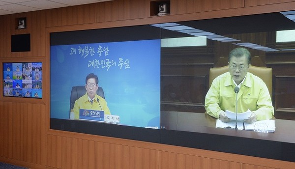 양승조 충남지사가 신종 코로나바이러스 감염증(코로나19) 확산을 억제하기 위한 대책을 문재인 대통령에게 건의했다.