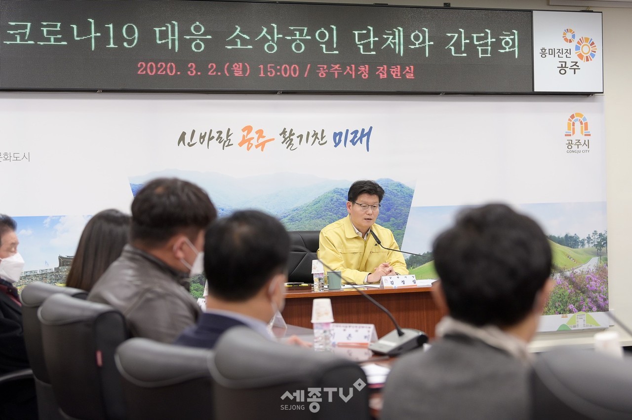 공주시(시장 김정섭)가 지난 2일 시청 집현실에서 관내 소상공인 단체와 간담회를 갖고 코로나19 확산에 따른 지역경제 활성화 대책을 논의했다.