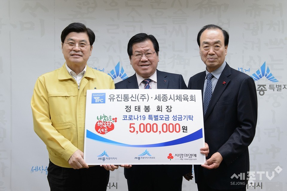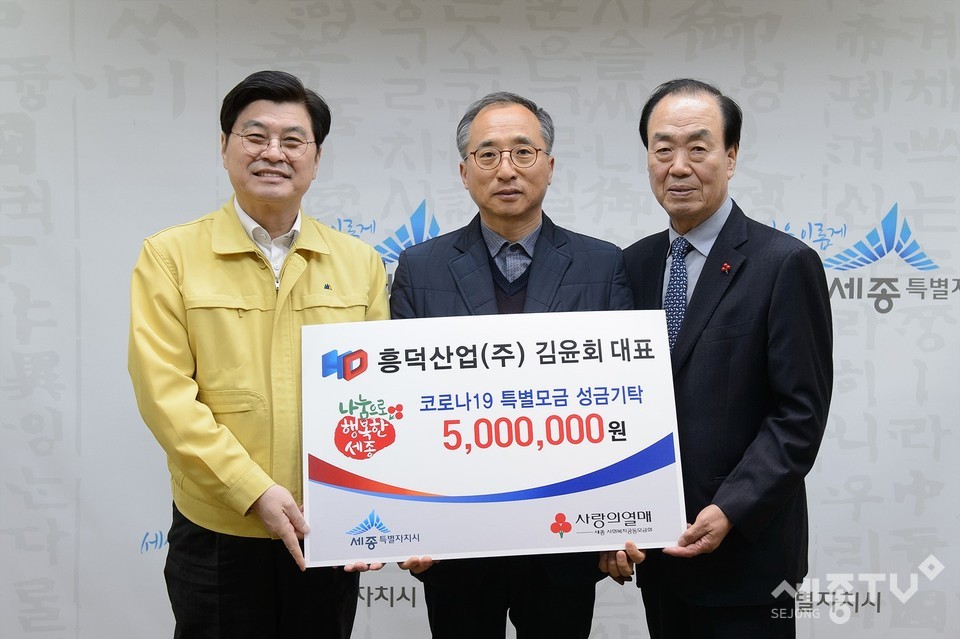 이날 성금 전달식에서는 흥덕산업㈜(김윤회 대표)과 세종시체육회(정태봉 회장)가 각각 500만 원의 성금을 기탁했다.