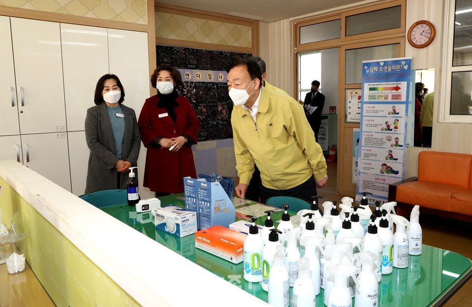 이번 점검에서 설동호 교육감은 학교시설에 대한 방역 소독 현장과 마스크, 손소독제 등 방역물품 비치 현황을 파악하는 등 현장 구석구석을 점검하였다.