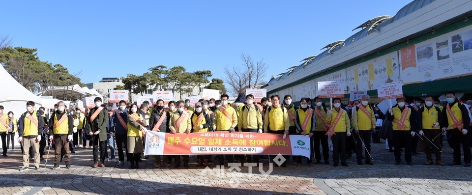 공주시(시장 김정섭)가 코로나19 확산을 막기 위한 범시민 소독의 날 캠페인을 11일 실시했다.