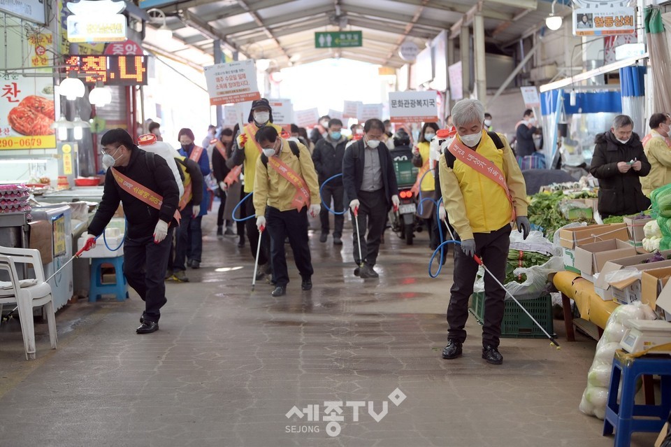 김정섭 시장을 비롯한 각 실과 부서장과 직원 등 200여명은 산성시장과 종합버스터미널 일원 상가 및 통행로, 공중화장실 등을 대상으로 방역 소독을 실시했다.