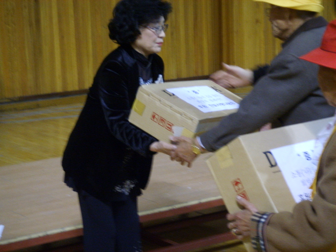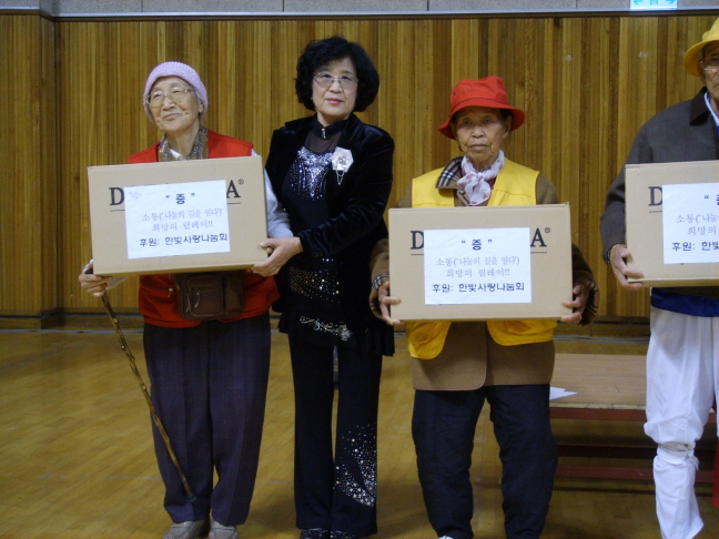 이 봉사단체는 지난 13일 동구, 대덕구 등 대전시 관내 쉼터,경로대 노인 수백명을 모시고 공연,다과제공과 500만원상당의 가전제품,의료기,식품종합선물세트 등을 전달하며 어르신 위안잔치를 가졌다. <사진>