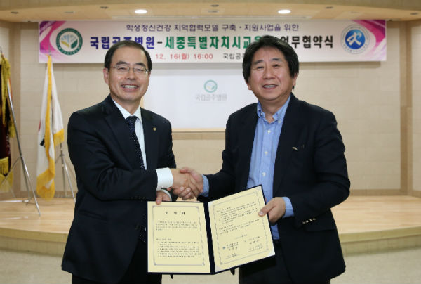 세종특별자치시교육청(교육감권한대행 부교육감 전우홍)은 16일 오후 4시 국립공주병원에서 전우홍 교육감 권한대행, 이영문 병원장 및 업무담당자 등 30여 명이 참석한 가운데 학생 정신건강 지역협력모델 사업의 연대 추진을 위한 협약을 체결했다고 밝혔다.