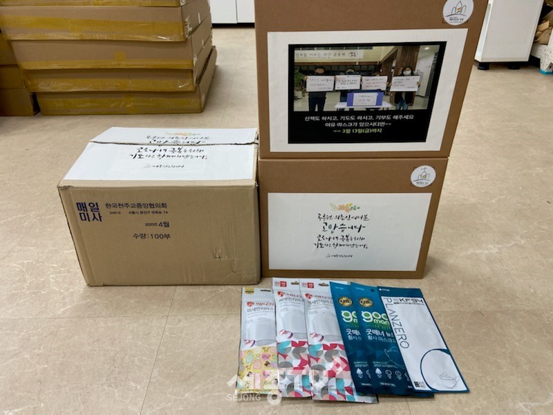 성요한성당은 지난 16일 관내 어려운 이웃에게 전달해 달라며 신자들이 십시일반 모은 마스크 350매를 새롬동행정복지센터에 기부했다.