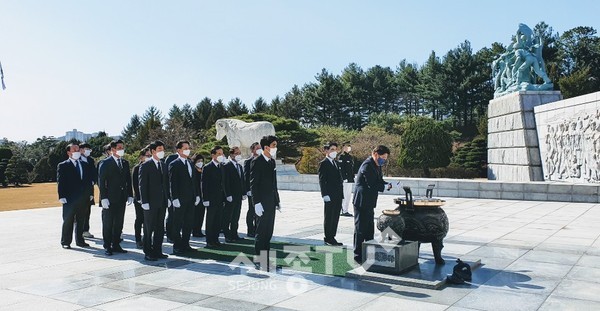 더불어민주당 황운하 대전 중구 국회의원 후보는 20일 오전 국립대전현충원을 방문해 국가와 민족을 위해 희생한 순국선열과 호국영령들을 참배했다.