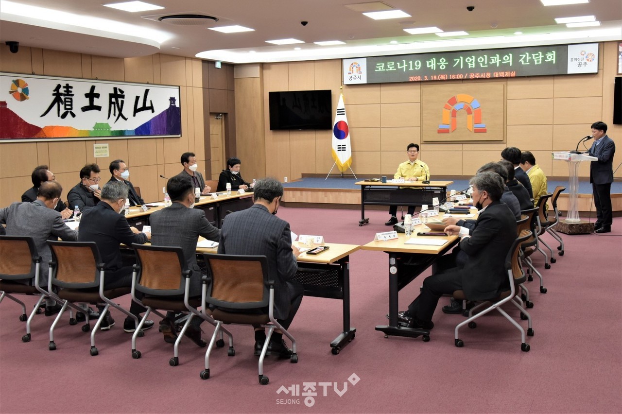 공주시(시장 김정섭)가 지난 19일 시청 대백제실에서 기업인과의 간담회를 갖고 코로나19 확산에 따른 지역경제 활성화 대책을 논의했다.