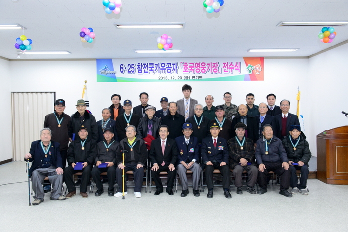 세종시 연기면(면장 김영인)이 지난 20일 오후 4시 면사무소 대회의실에서 6·25참전 국가유공자 23명에게 ‘호국영웅기장’을 전달하는 전수식을 가졌다.