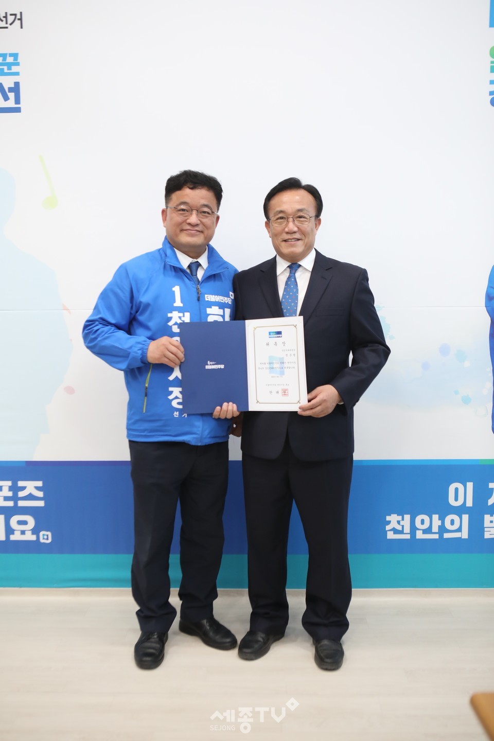 더불어민주당 한태선 천안시장 예비후보 캠프에 정순평 예비후보가 합류했다.