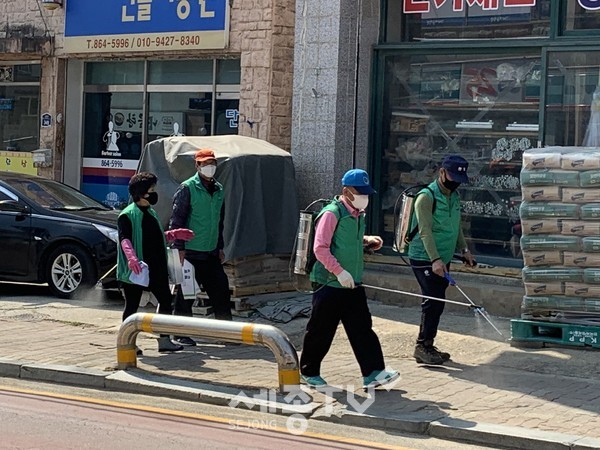 연서면 새마을협의회는 코로나19 확산으로 지역사회의 불안감이 커지자 주민들의 안전을 지키기 위해 3월부터 주 1회 방역 봉사활동을 꾸준히 실시하고 있다.