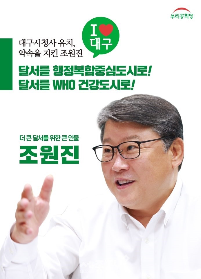 조원진 의원은 “공무원 연금개혁 성공, 대구시 신청사 유치 성공 등 약속을 지키는 정치인으로 달서구민께 다가서겠다”면서 “새로운 중흥을 기대하고 있는 달서구를 청년의 꿈이 이루어지는 달서구로 반드시 만들겠다”고 밝혔다.