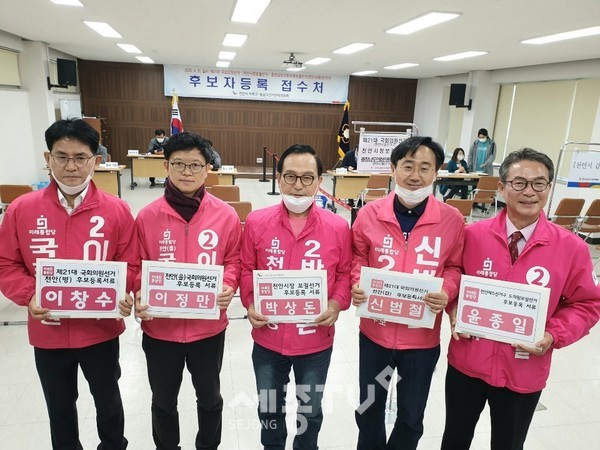 이정만 후보는 26일 오전 천안함 폭침 10주기를 맞아 미래통합당 후보들과 합동 참배를 마치고, 10시 천안시 선거관리위원회에 모여 후보자등록을 합동으로 마쳤다.