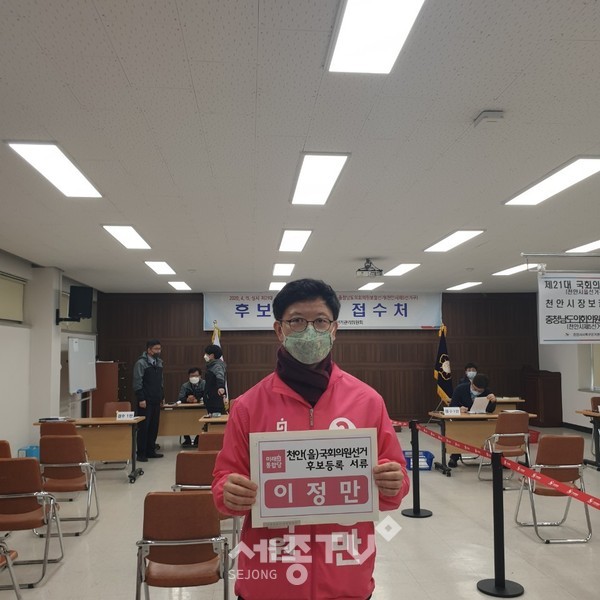 제21대 국회의원선거 미래통합당 천안을 이정만 후보가 26일 오전10시 천안시선거관리위원회에 후보자등록을 마쳤다.