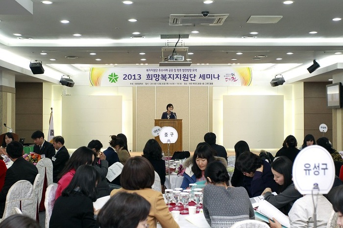 대전시는 2013년 사회복지전달체계 개선일환으로 지난해 4월 희망복지지원단을 설치한후 지금까지의 운영 우수 자치구와 타 지역 운영사례 발표를 통해 상호 정보공유와 향후 발전방향을 도출하여 향후 바람직한 운영방향 도출 하고자 26일 오후 레전드 호텔에서 “유수사례 공유 및 발전방향”이란 주제로 세미나를 가졌다