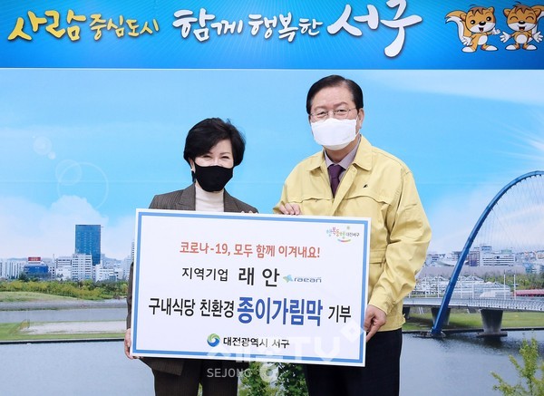 - 서구, 지역기업 ㈜래안으로부터 친환경‘종이 가림막’기부받아