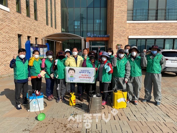 세종특별자치시 장군면 새마을협의회(회장 윤승욱)는 지난 30일 코로나 19 확산 방지를 위해 15여명이 모여 관내 주요시설에 대한 방역 소독을 실시했다고 밝혔다.