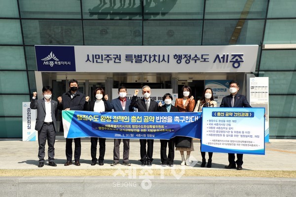 세종시 정치권과 시민단체는 4‧15 총선을 앞두고 각 정당과 국회의원 후보자들에게 ‘행정수도 완성’정책을 공약에 반영해 줄 것을 촉구했다.