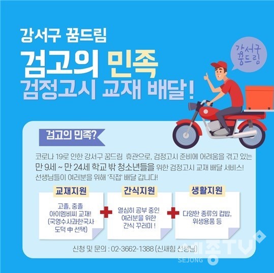 서울 강서구(구청장 노현송) 청소년지원센터 꿈드림(소장 오현주)은 서울시 최초로 학교 밖 청소년을 대상으로 비대면 검정고시 지원 배달 서비스를 운영한다고 밝혔다.