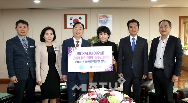 바이오살(BIOSAL)은 2012년 창업한 기능성 암염제품을 개발하는 여성 기술창업기업으로서, 이번에 기탁한 물품은 손세정용 천연암염 제품 비누 450개로, 초등학교 긴급돌봄 교실에 전달되어 코로나19를 예방하고 학생들의 건강을 지키는 데 긴요하게 사용될 예정이다.