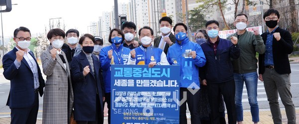 강준현 더불어민주당 세종(을) 국회의원 후보는 7일 테마별 릴레이 정책발표 세 번째로 ‘교통중심도시 세종을 만들겠습니다’ 라는 주제로 고운동 아름4교에서 교통 관련 정책발표를 가졌다.