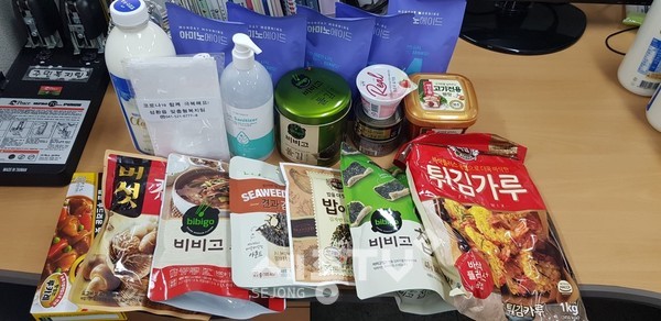 이번 건강지킴이 사업은 마스크, 손소독제, 식료품 등 생필품세트와 코로나 극복에 동참하고자 ㈜에프앤비바이오(대표 채종우)의 레드비트 착즙, ‘온다’ 커피숍(대표 김미숙)의 계란 기부가 더해져 이뤄졌다.