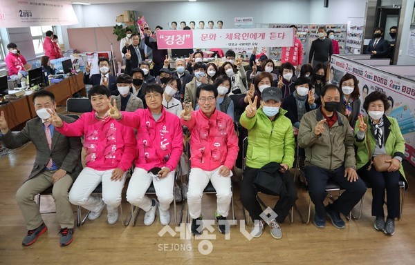 양홍규 미래통합당 대전 서구을 국회의원 후보는 8일 오후 2시 홍혜경 아르떼음악심리연구소 소장 등 60여명의 문화체육인과 함께 ‘경청 문화체육인에게 듣다’를 개최했다. 저작권자 © SJB세종TV 무단전재 및 재배포 금지 박종신 기자 다른기사 보기 페이스북 트위터 카카오톡 네이버블로그 구글+ URL복사 기사공유하기