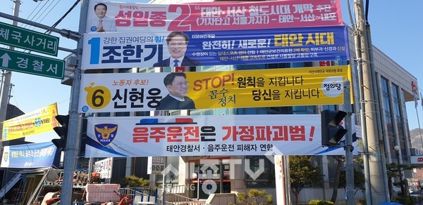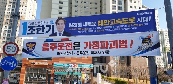 지난 6일 태안군 관내에 게시되었던 음주운전 피해자연합 등이 게시한 것으로 보이는 음주운전 근절 캠페인 현수막 수십 여장이 게시 된지 하루 만에 경찰에 의해 철거되어 그 의도를 두고 지역사회 의견이 분분하다.
