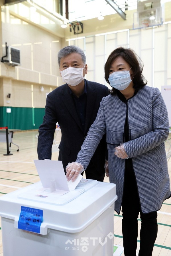 - 10일 새롬동 복합커뮤니티센터에서 배우자와 함께 사전투표 참여