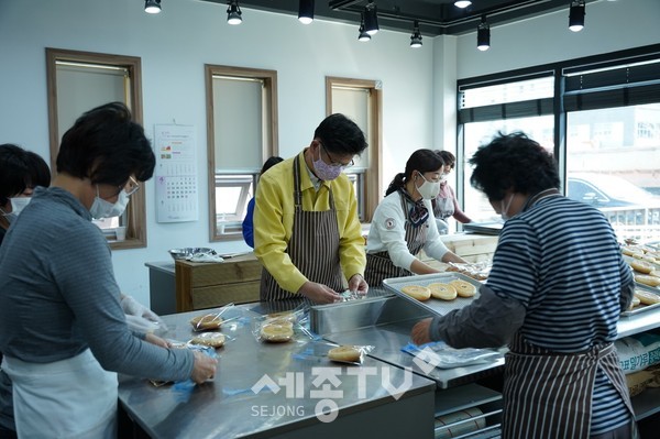 이날 봉사활동에는 김정섭 시장도 직접 참여해 자원봉사자들의 노고를 격려한 뒤 함께 빵을 만들었으며, 관내 발달장애 청년들도 동참해 의미를 더했다.