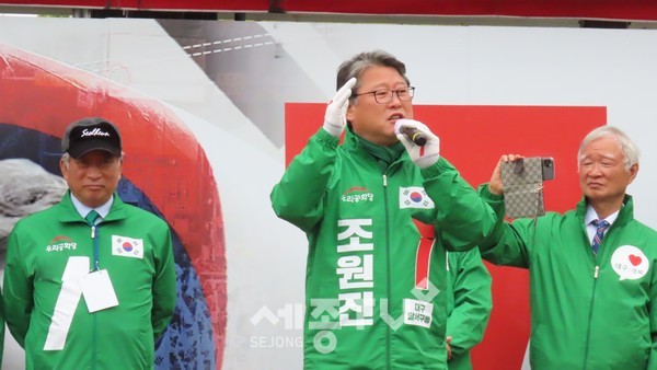 우리공화당 조원진 후보(대구 달서구병)는 11일(토) 13시 두류공원 문화예술회관 앞에서 열린 우리공화당 합동유세에서 “대구의 자존심을 세울 유일한 후보 기호 7번 조원진을 지켜달라”고 호소했다.
