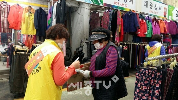 공주시(시장 김정섭)가 지난 11일 산성시장 일원에서 코로나19 관련 ‘사회적 거리두기’ 일환으로 홍보 캠페인을 이어갔다.