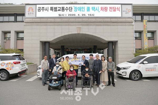 시는 지난 20일 시청 광장에서 김정섭 시장과 장원석 한국지체장애인협회 충남지부 공주시지회장을 비롯한 관계자 10여 명이 참석한 가운데 장애인 콜택시 전달식을 가졌다.