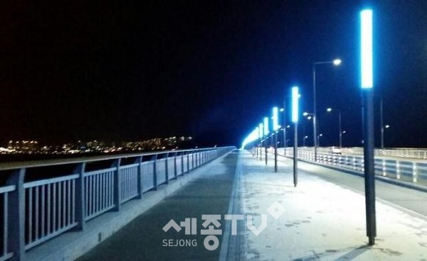 세종시는 금강 장대교량(학나래교, 햇무리교)의 경관조명을 활용해 의료진을 상징하는 파란색 조명을 23일 야간부터 내달 15일까지 밝힐 예정이다.