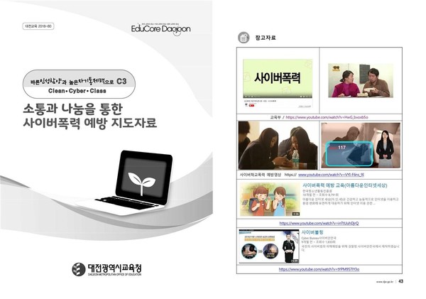 대전광역시교육청(교육감 설동호)은 사이버폭력 예방활동을 지원하기 위하여 사이버폭력 예방 지도자료 보급 및 대전지방경찰청과 연계한 사이버폭력 예방활동을 전개한다고 밝혔다.