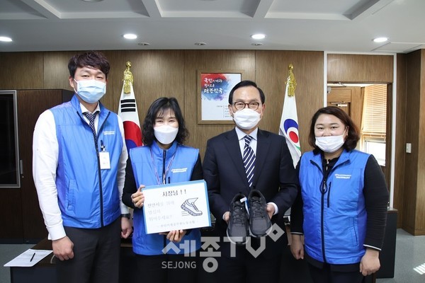 - 박상돈 시장과 공식 면담 갖고 발로 뛰어달라는 뜻에서 운동화 선물