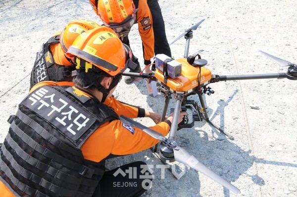 세종소방본부(본부장 강대훈)가 지난 29일 원수산에서 소방드론을 활용한 인명구조훈련을 실시했다.