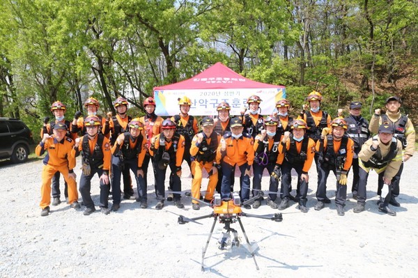 이번 훈련은 소방대원이 진입하기 곤란한 지역에서 요구조자 수색 등 소방드론 활용성 및 적응성을 높이기 위해 실시됐다.