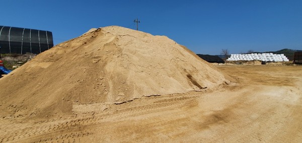금산군 건설 과에서 제설용 염화나트륨을 수변노천에 야적해 놓고, 수변바닥에서 모래와 혼합하는 작업을 올바른 공무라고 인식하고 있는 실정이다.