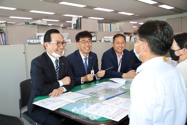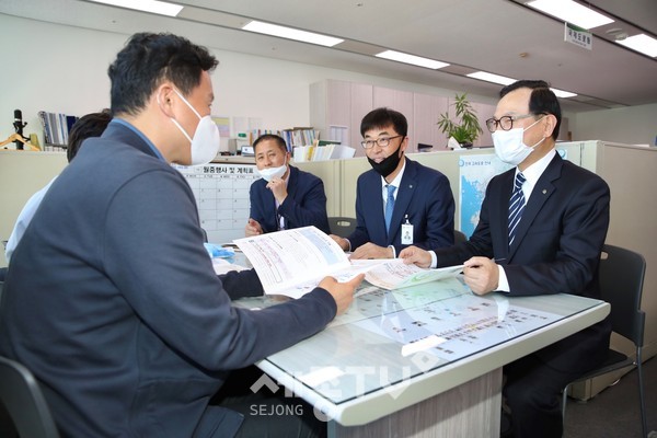 환경부에는 9, 451억원을 예산에 반영해 달라고 당부했다. 천안공공하수처리장 시설현대화 민간투자사업 65억원, 입장처리분구 하수관로 정비사업 59억원, 풍세면 하수관로 정비사업 48억원, 정밀조사 결과 노후·불량구간 성정 천안천상류 처리분구 노후하수관로정비사업 26억원 반영을 건의했다.