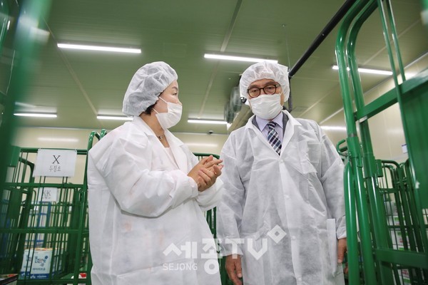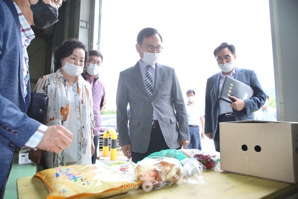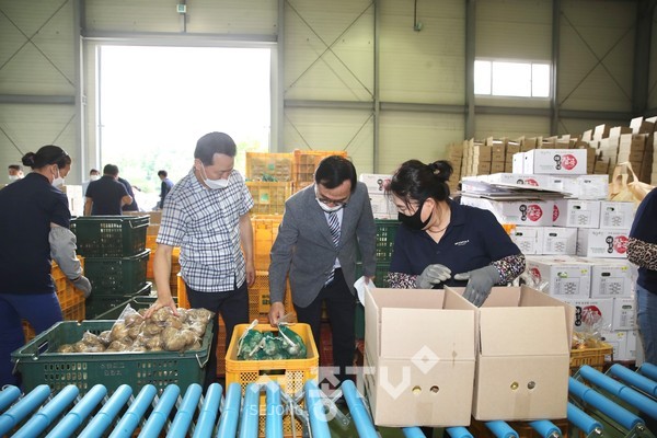 이날 박상돈 시장과 가경신 천안교육장, 농산물품질관리원은 직접 학교급식지원센터를 찾아 함께 농산물 꾸러미 품질 상태와 식재료 공급 환경과 배송 시스템을 점검하고, 센터 증축과 운영 현황 등을 일일이 확인했다.