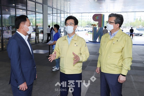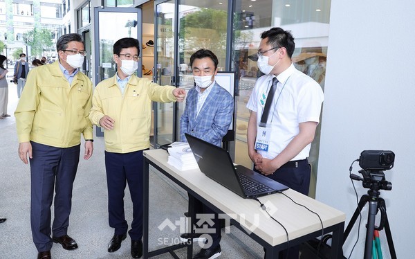 허태정 시장은 이날 해당 시설의 열화상 카메라 설치와 손소독제 설치, 대기동선 시행 여부 등 방역상황을 꼼꼼히 살폈다.