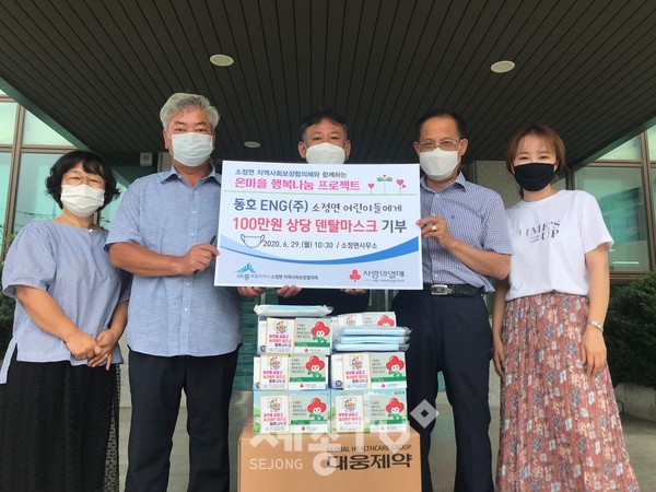 동호ENG㈜는 지역사회 기부활동에 앞장서고 있는 방역업체로, 소정면 지역사회보장협의체와 논의를 통해 지역 어린이의 건강한 여름나기를 위해 덴탈마스크를 지원키로 결정했다.