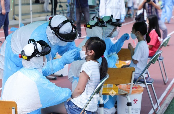 - 천동초 전수검사 선별진료소, 정밀 제독 현장 찾아 관계자 격려 -