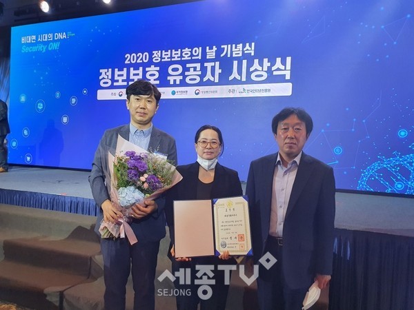 세종특별자치시(시장 이춘희)가 8일 서울 더케이호텔에서 열린 ‘제9회 정보보호의 날 기념식’에서 전자정부 정보보호에 기여한 공로를 인정받아 정보보호 우수기관에 선정됐다.