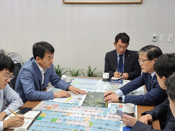 더불어민주당 문진석 천안갑 국회의원이 8일(수) 한국토지주택공사(LH) 변창흠 사장을 만나 천안 신부 행복주택 사업 진행 사항을 보고받고 공공주택과 생활·문화 시설을 결합한 천안형 행복주택 추진을 요청했다.