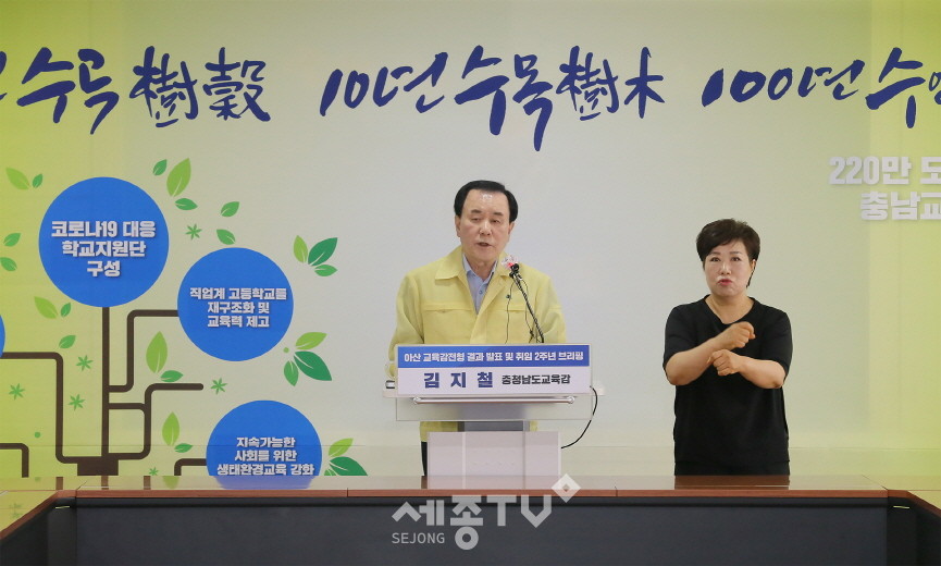 한편, 김교육감은 이날 2주년 취임 기자회견에서 지난 2년 동안 추진한 ▲2020 전국 교육감 공약이행 평가 '최고등급(SA)' 달성 ▲유치원부터 고교까지 무상교육 완성, 전국 최초 3대 무상교육 전면 실시 ▲혁신학교 확대와 혁신동행학교 운영 ▲교육청, 시군 지자체, 28개 대학이 업무협약 대학연계형 공동교육과정 운영 ▲5개 권역(천안, 남부, 서산, 내포, 보령) 진학상담센터 운영 ▲소프트웨어교육체험센터 설립, 시군별 상상이룸공작소 구축, 과학교육원 신축 이전 ▲안전한 교육환경 조성을 위한 안전체험관 건립과 ‘학교폭력 예방 어울림 톡’ 개발 ▲학교 민주주의 지수 개발과 교권보호 안전망 구축 ▲학교 내 일제 잔재 청산 작업 ▲코로나19 사태에 전국 최초 ‘어서와! 충남온라인학교’ 운영 등 10대 성과를 강조했다.