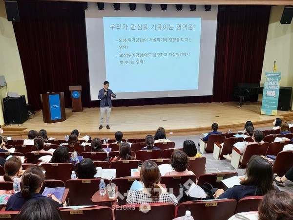 (재)충청남도청소년진흥원(원장 박영의)은 충남 자살률 1위, 충남 청소년 자살률 4위로 충남지역 자살률의 심각성이 대두되어‘청소년 자살・자해 트라우마 대처방법’이라는 주제로 7월 10일(금) 아산시청소년교육문화센터 스마트홀에서 학부모 및 지도자 대상으로 공개특강을 진행했다.