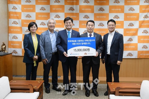 세종시를 대표하는 지역기업 이텍산업㈜(회장 이두식)이 13일 세종시청 접견실에서 세종시문화재단(대표이사 김종률)에 문화예술후원금 1천5백만원을 전달했다.